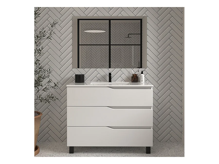 Meuble de salle de bain 100cm simple vasque - 3 tiroirs - blanc - MATA