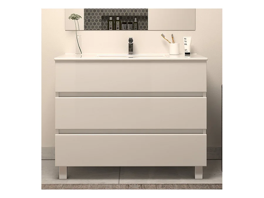 Meuble de salle de bain 100cm simple vasque - sans miroir - 3 tiroirs - blanc - MAYOR