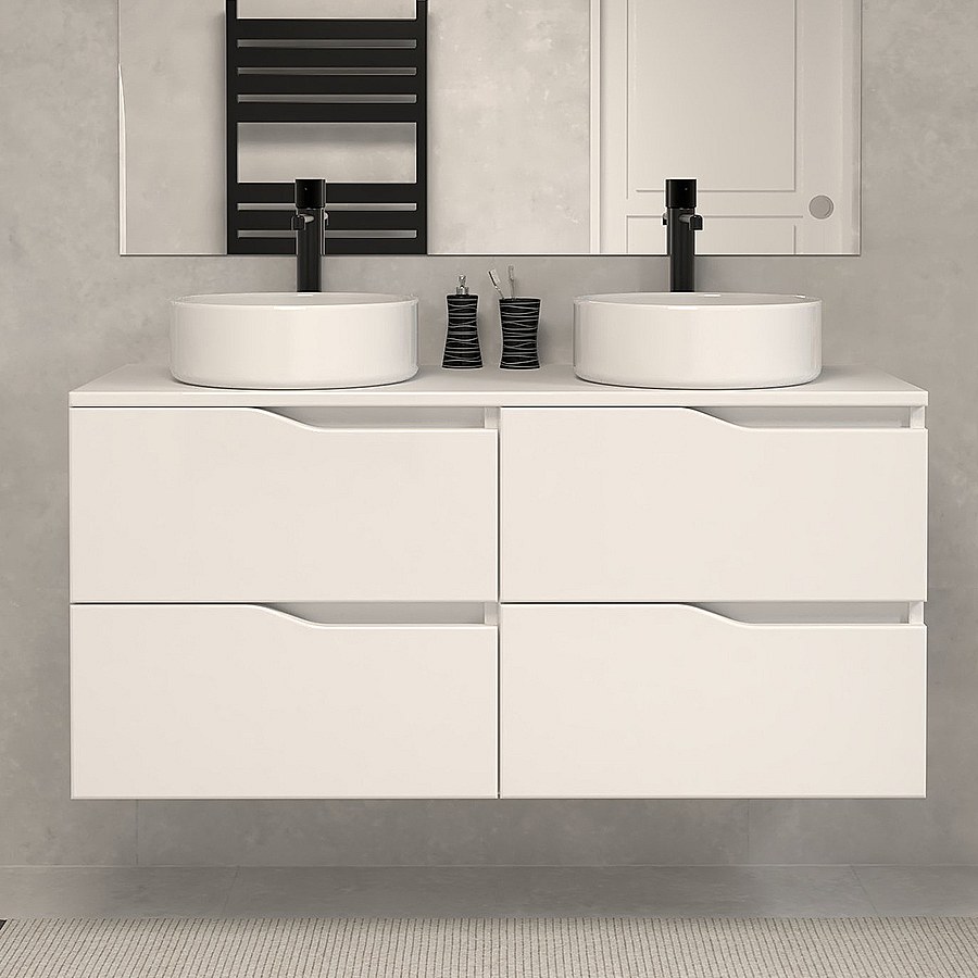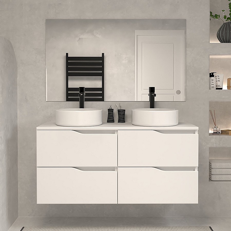 Meuble de salle de bain 120 avec plateau et 2 vasques à poser - 4 tiroirs - blanc - LUNA