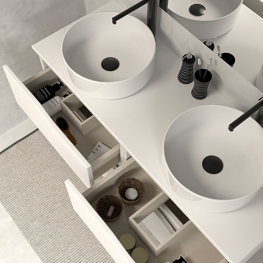Meuble de salle de bain 120 avec plateau et 2 vasques à poser - sans miroir - 4 tiroirs - blanc - LUNA