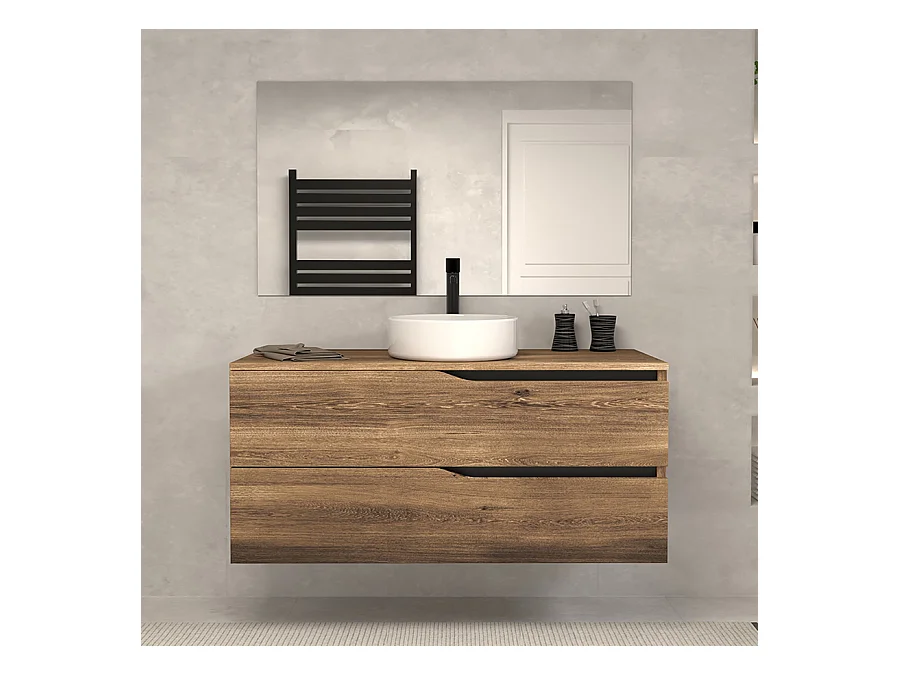 Meuble de salle de bain 120 avec plateau et vasque à poser - 2 tiroirs - tabaco (bois foncé) - LUNA