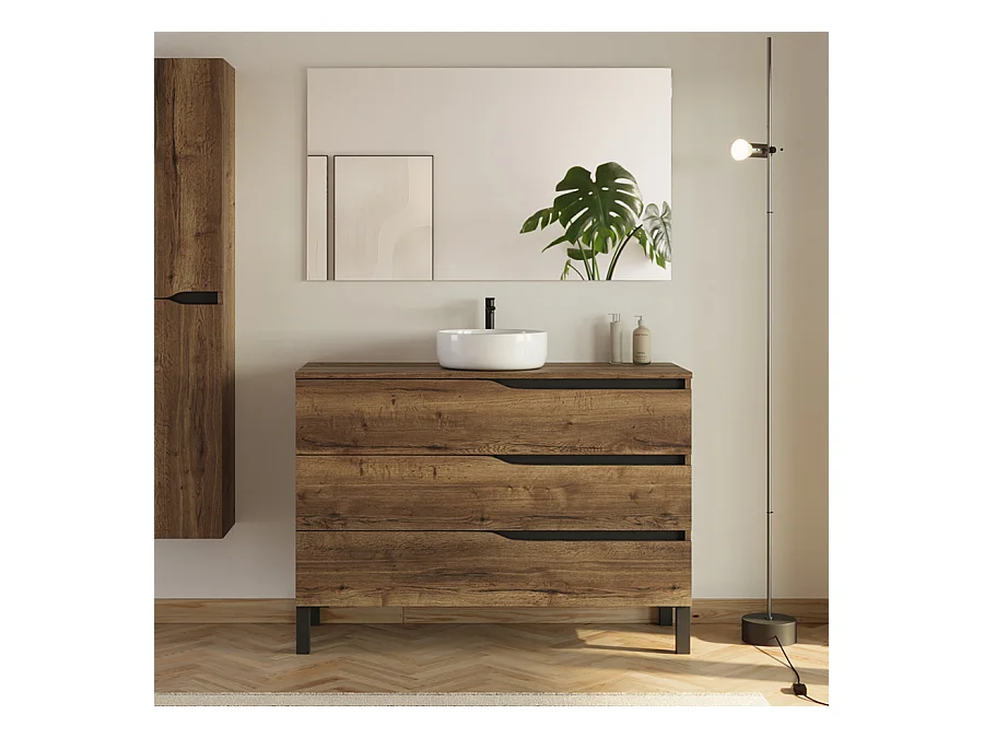 Meuble de salle de bain 120 avec plateau et vasque à poser - 3 tiroirs - tabaco (bois foncé) - MATA