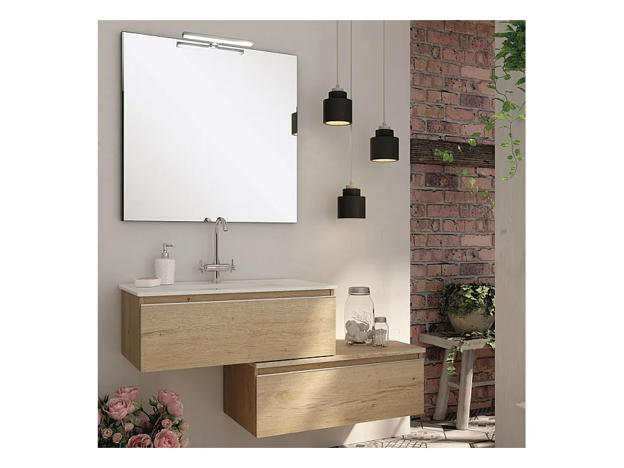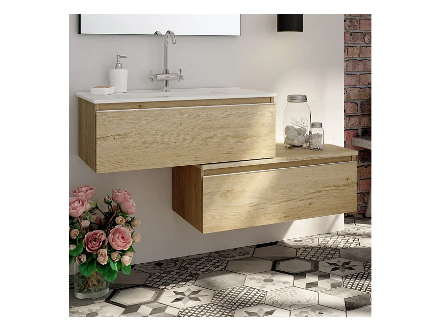 Meuble de salle de bain 120 cm simple vasque - 2 tiroirs - PENA - bambou (chêne clair)