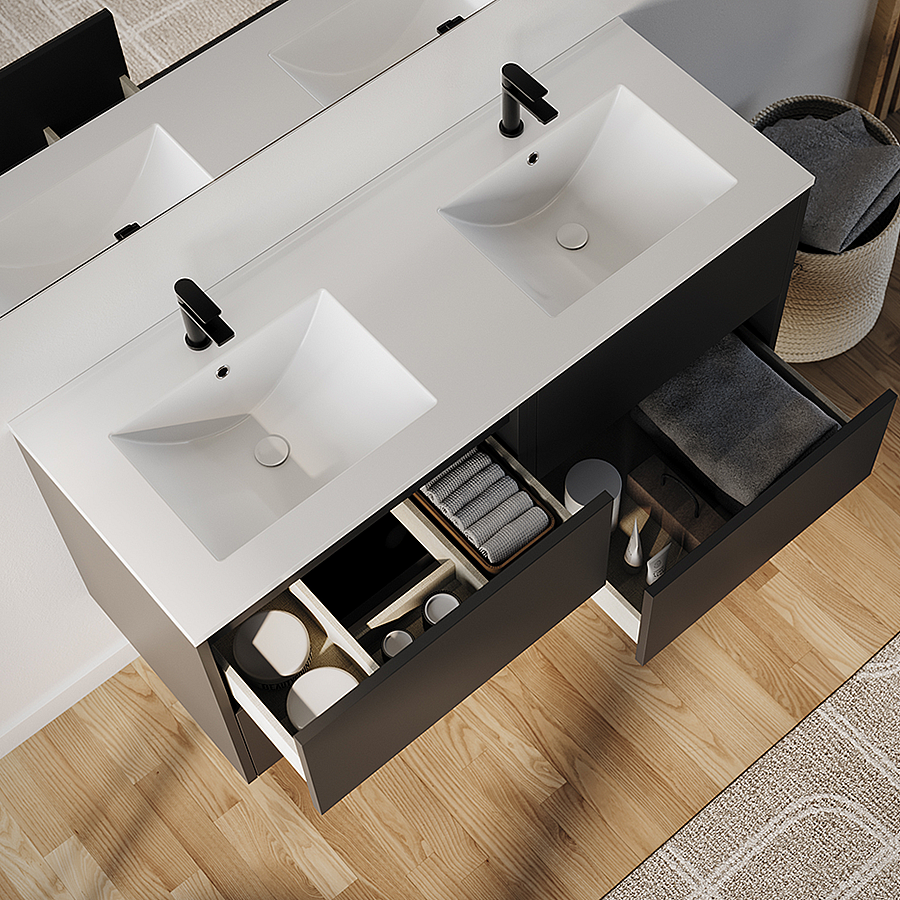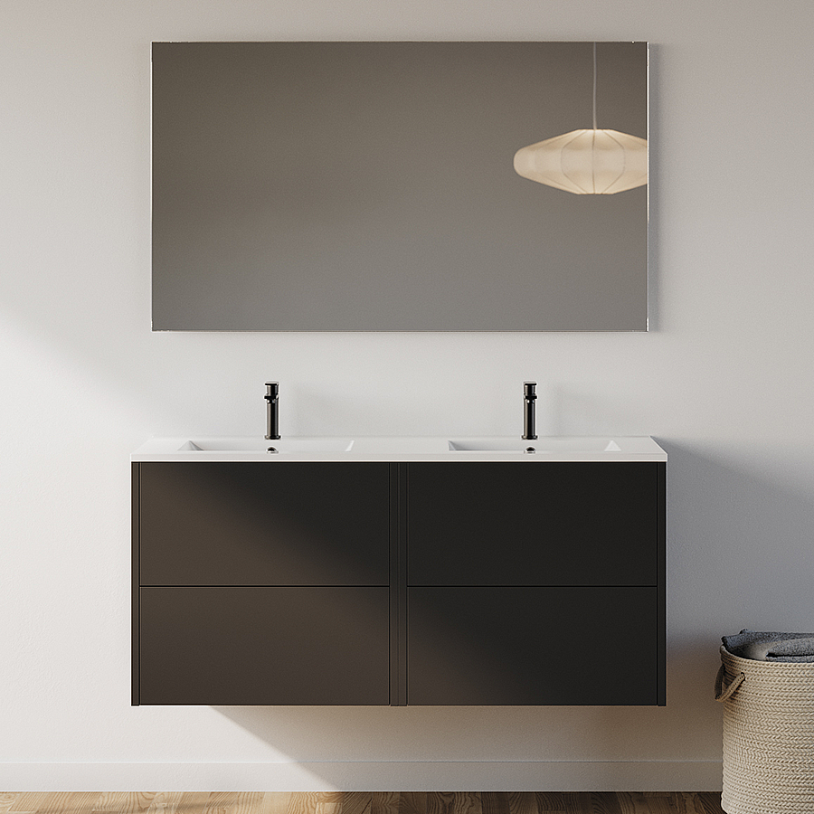 Meuble de salle de bain 120cm avec double vasque - 4 tiroirs - noir - MONA