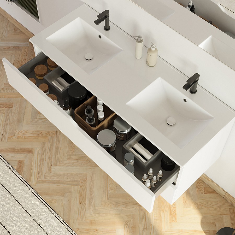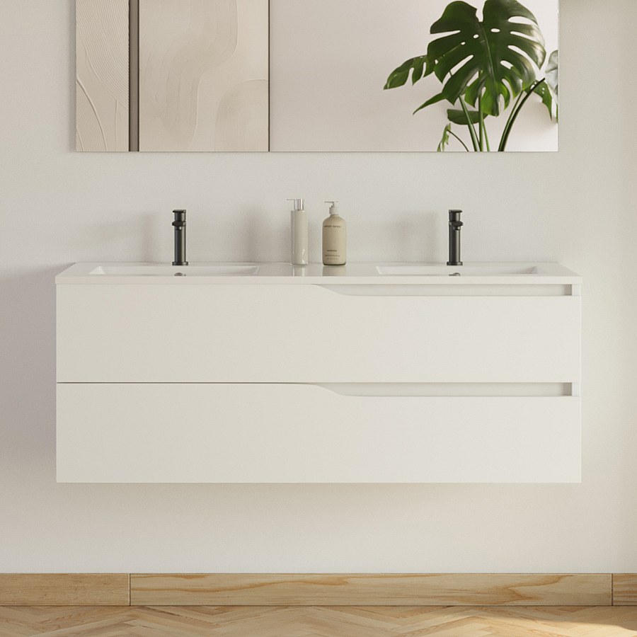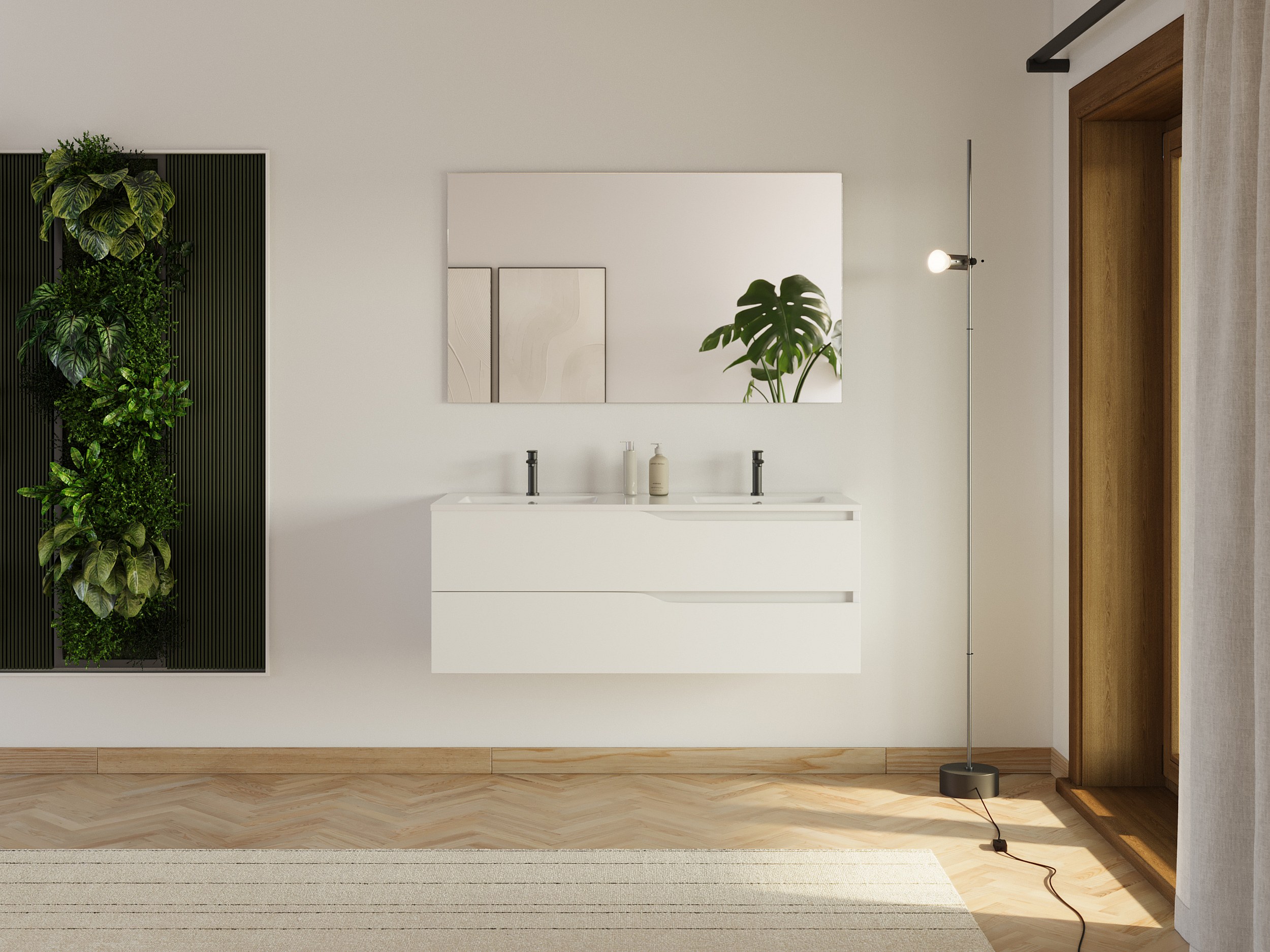 Meuble de salle de bain 120cm avec plan double vasque - 2 tiroirs - sans miroir - blanc - LUNA
