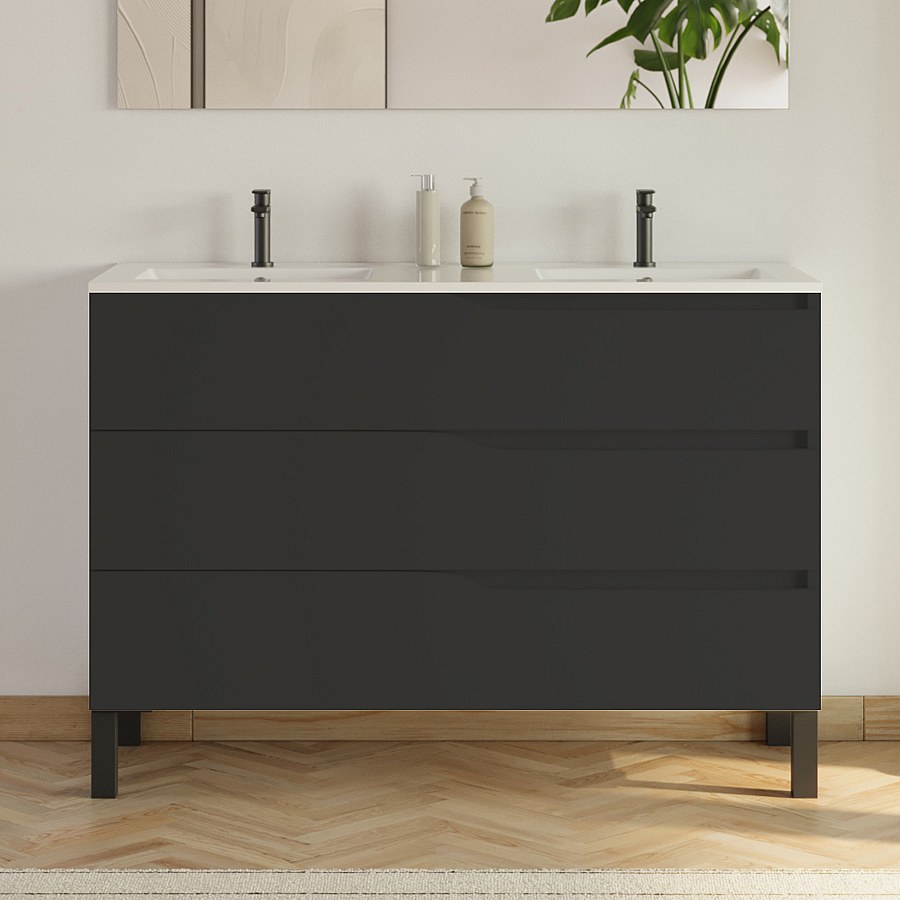 Meuble de salle de bain 120cm avec plan double vasque - 3 tiroirs - sans miroir - noir - MATA