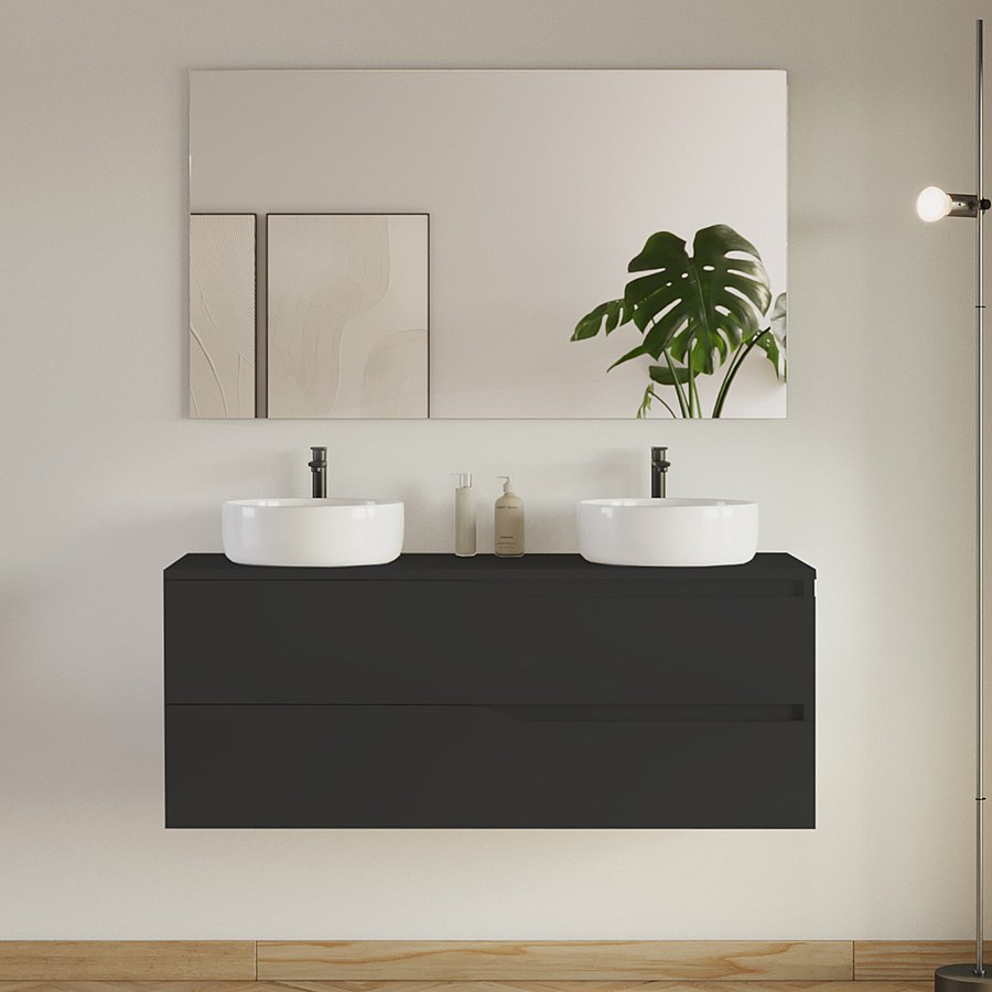 Meuble de salle de bain 120cm avec plateau et 2 vasques à poser Ares - 2 tiroirs - noir - LUNA