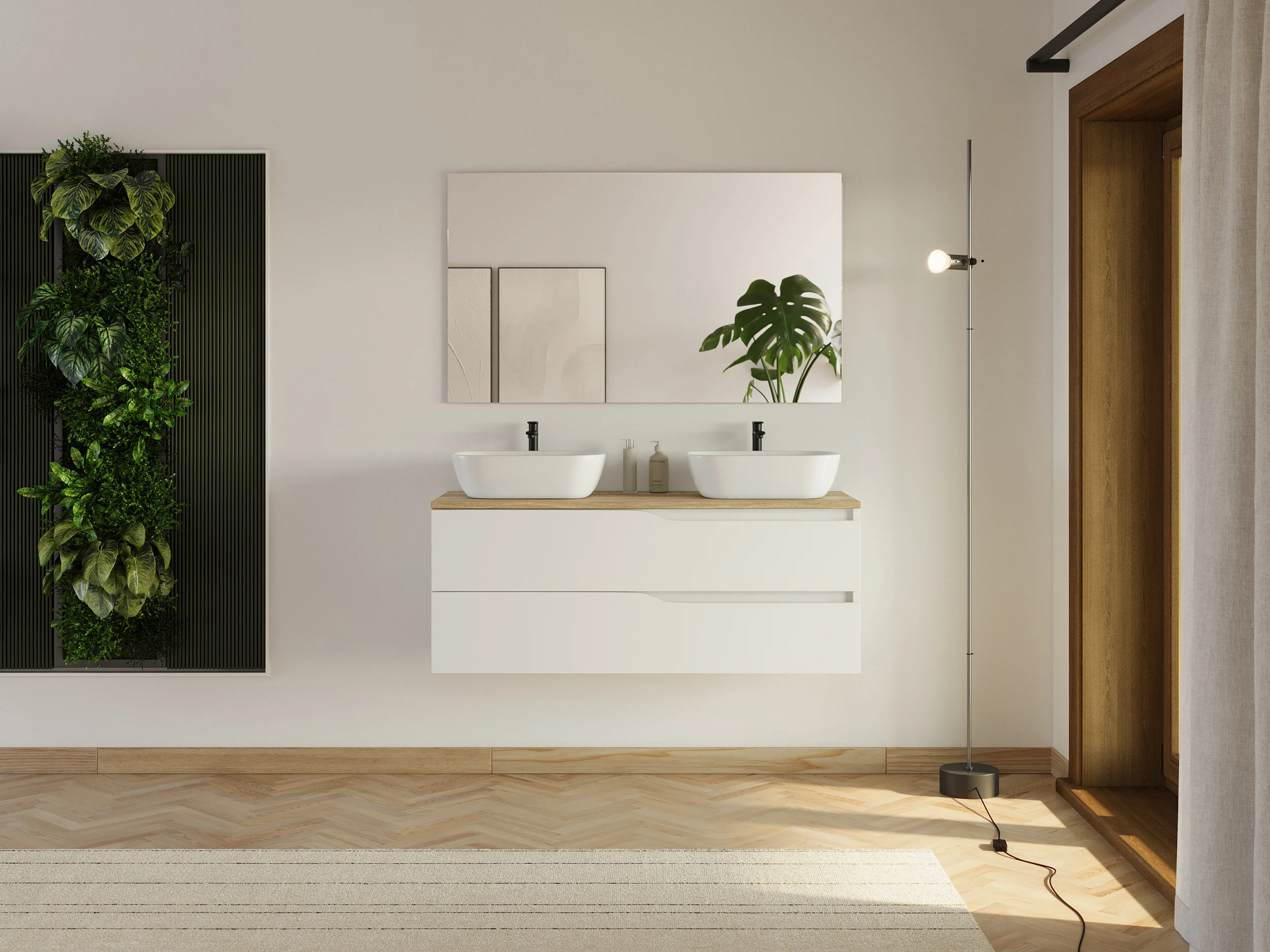Meuble de salle de bain 120cm avec plateau et 2 vasques à poser Zeus - 2 tiroirs - blanc - LUNA