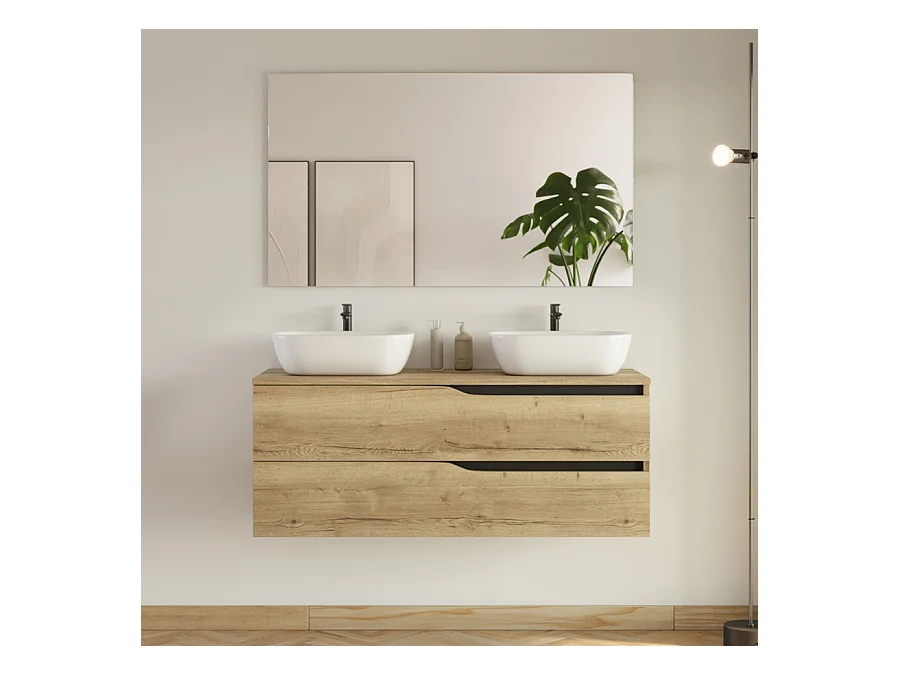 Meuble de salle de bain 120cm avec plateau et 2 vasques à poser Zeus - 2 tiroirs - madera miel (bois clair) - LUNA