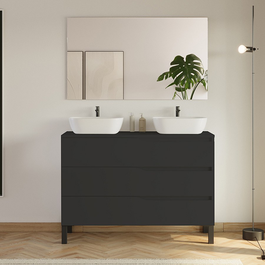 Meuble de salle de bain 120cm avec plateau et 2 vasques à poser Zeus - 3 tiroirs - noir - MATA