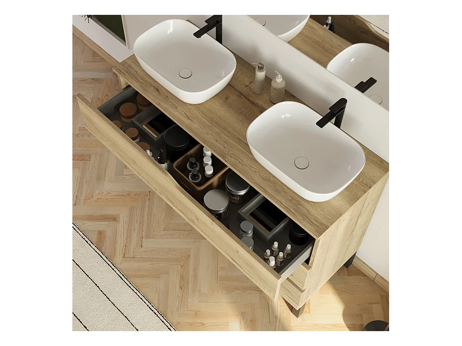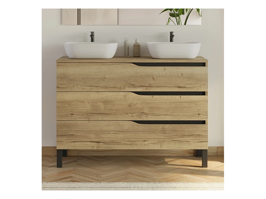 Meuble de salle de bain 120cm avec plateau et 2 vasques à poser Zeus - 3 tiroirs - sans miroir - madera miel (bois clair) - MATA