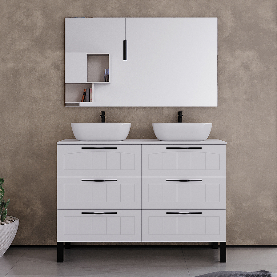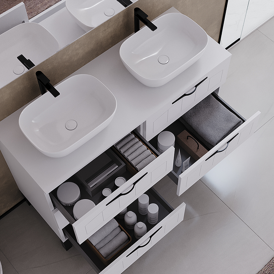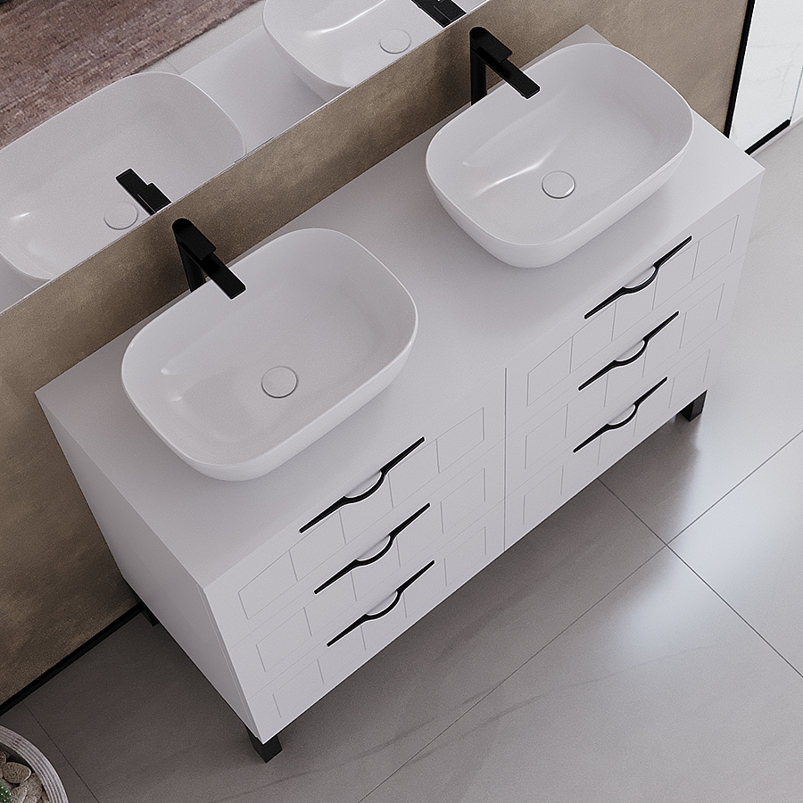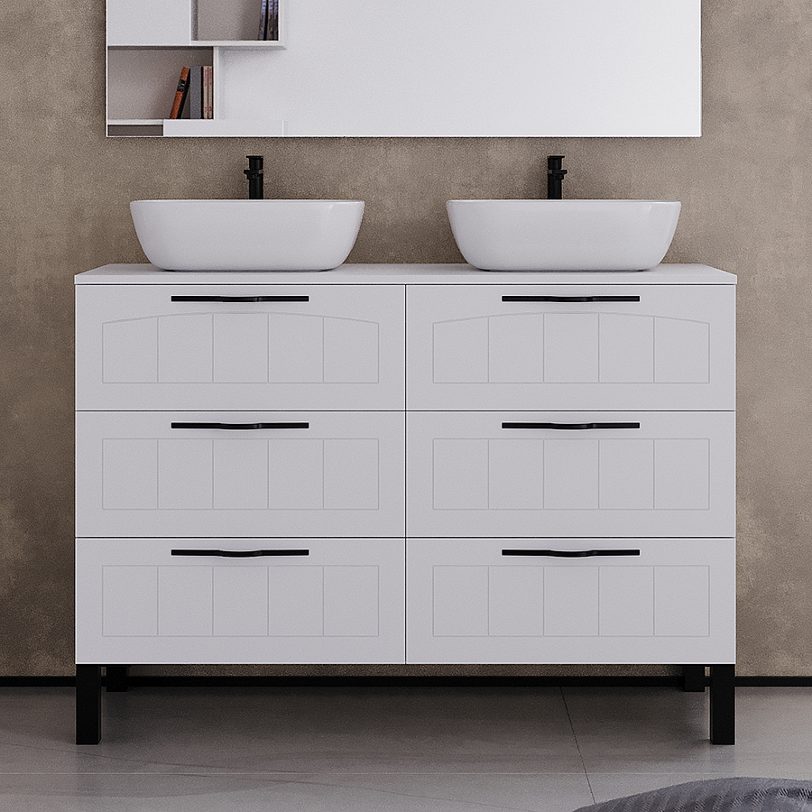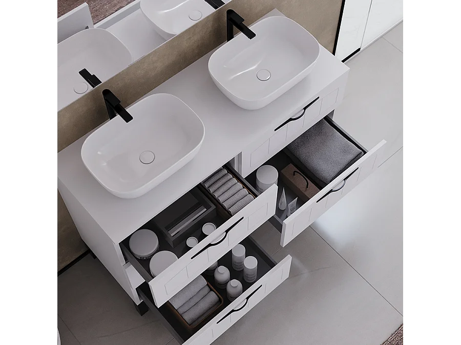 Meuble de salle de bain 120cm avec plateau et deux vasques à poser ovales - 6 tiroirs - blanc - CALA