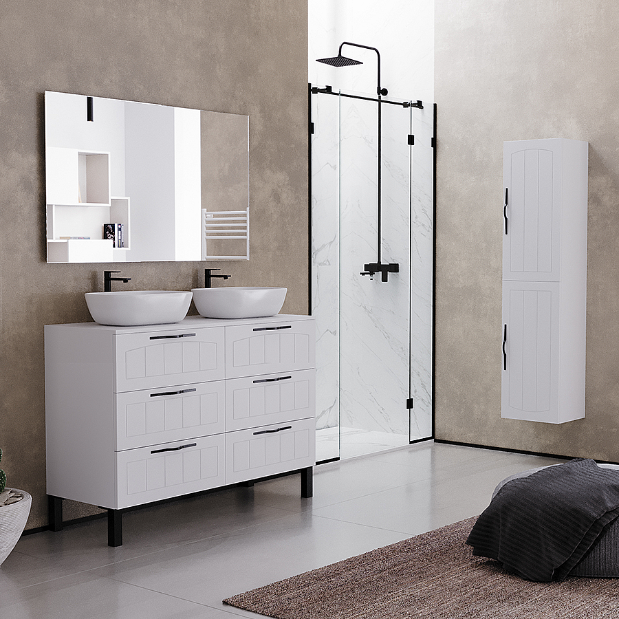 Meuble de salle de bain 120cm avec plateau et deux vasques à poser ovales - 6 tiroirs - sans miroir - blanc - CALA