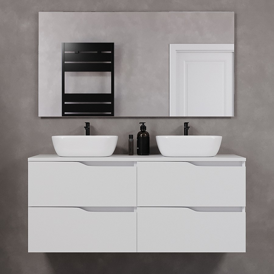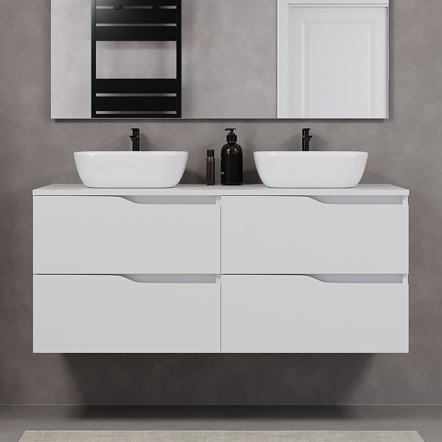 Meuble de salle de bain 120cm avec plateau et deux vasques à poser zeus - 4 tiroirs - blanc - LUNA