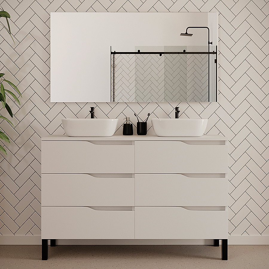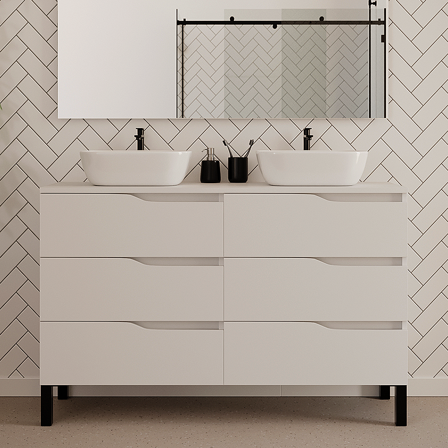 Meuble de salle de bain 120cm avec plateau et deux vasques à poser zeus - 6 tiroirs - blanc - MATA