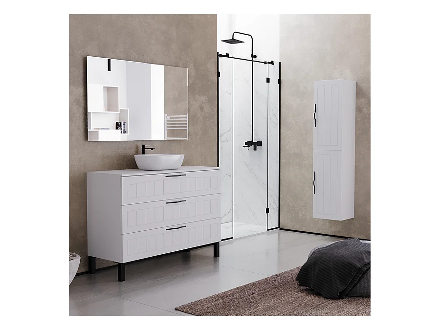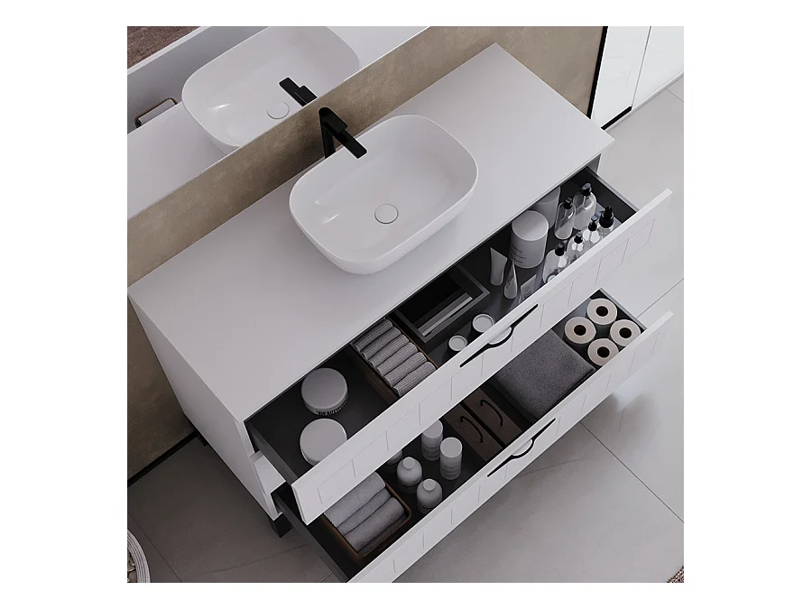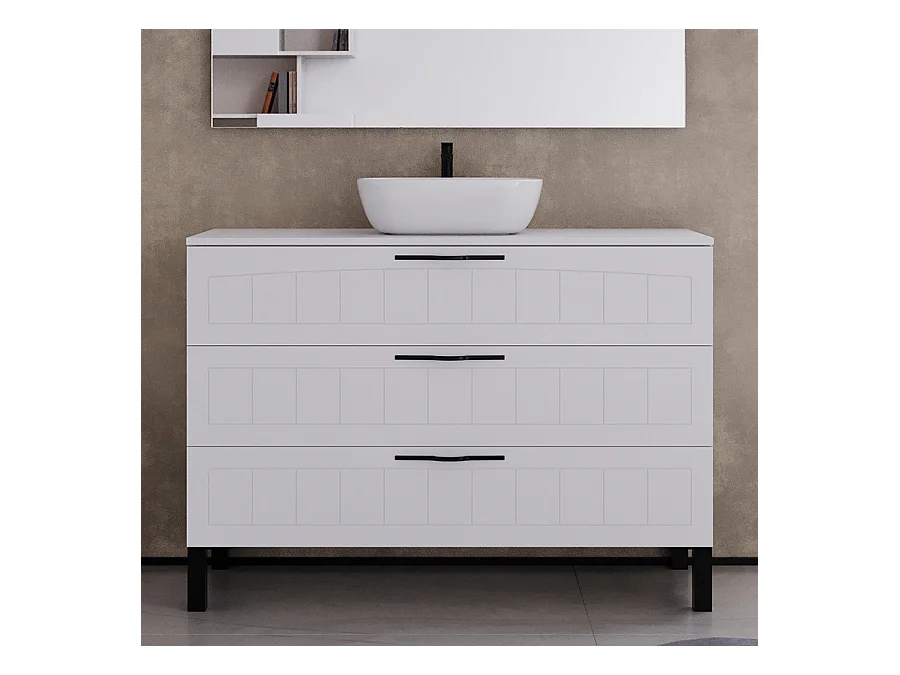 Meuble de salle de bain 120cm avec plateau et vasque à poser ovale - 3 tiroirs - sans miroir - blanc - CALA