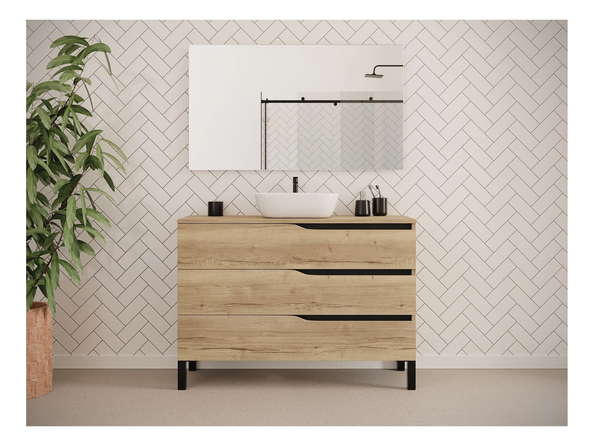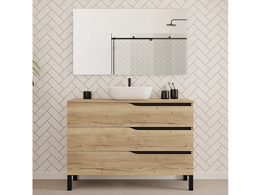 Meuble de salle de bain 120cm avec plateau et vasque à poser zeus - 3 tiroirs - madera miel (chêne clair) - MATA