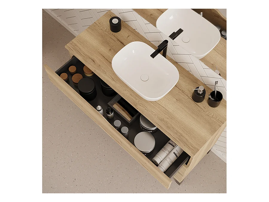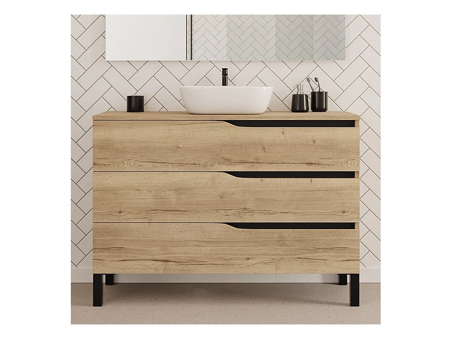 Meuble de salle de bain 120cm avec plateau et vasque à poser zeus - 3 tiroirs - sans miroir - madera miel (chêne clair) - MATA