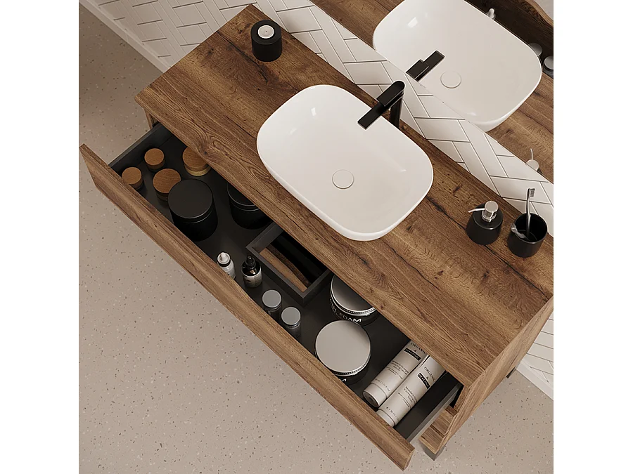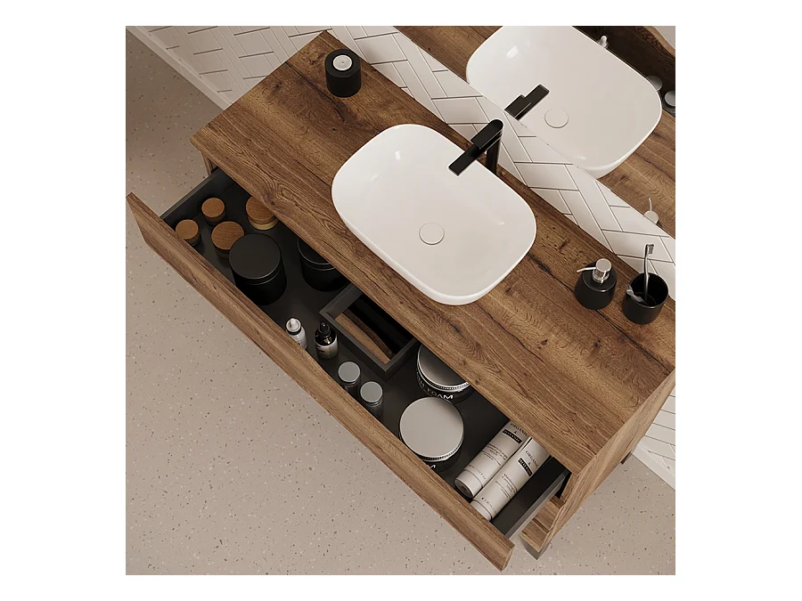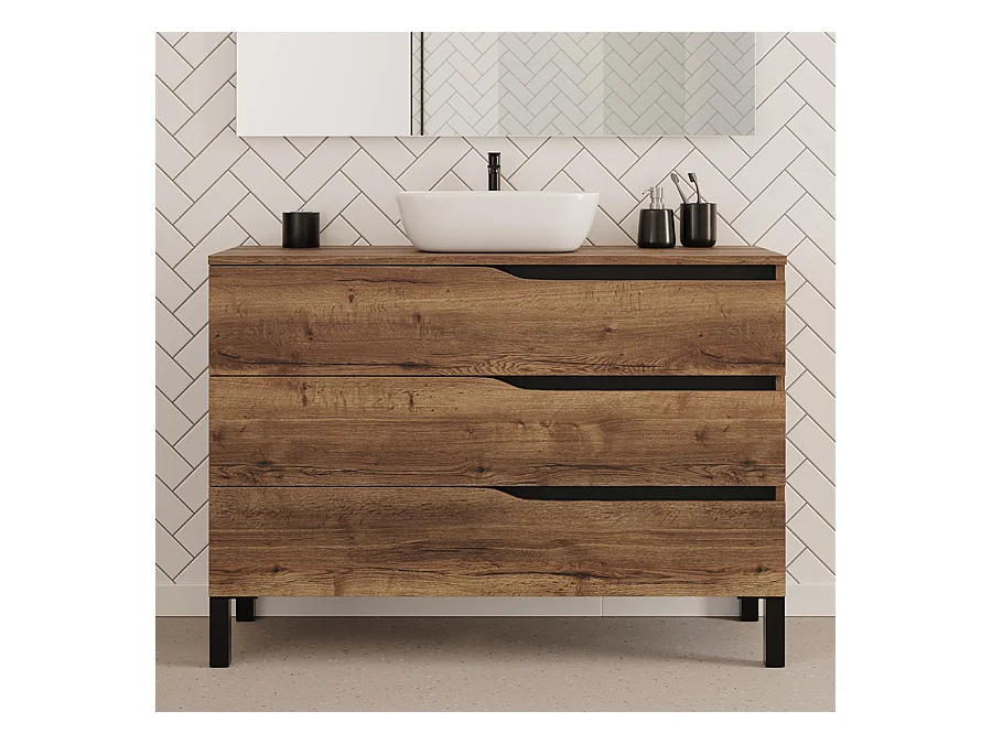 Meuble de salle de bain 120cm avec plateau et vasque à poser zeus - 3 tiroirs - sans miroir - tabaco (chêne foncé) - MATA