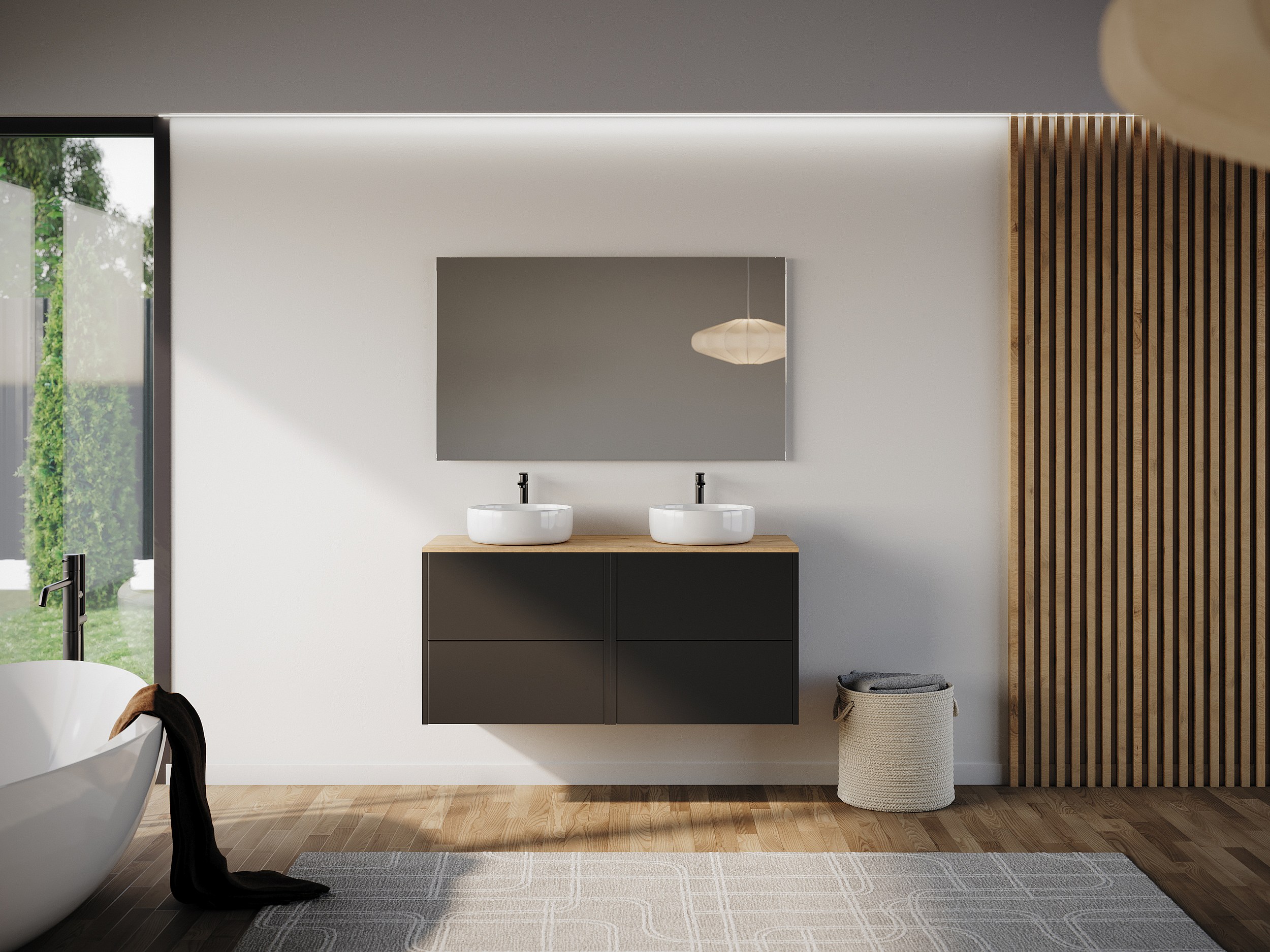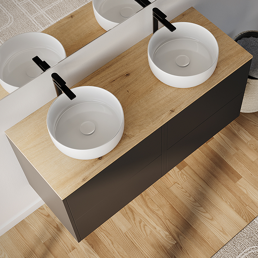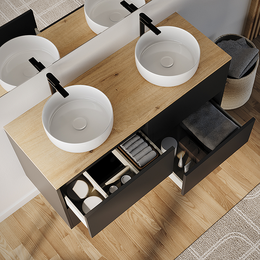 Meuble de salle de bain 120cm avec vasque à poser ronde - 4 tiroirs - sans miroir - noir - MONA