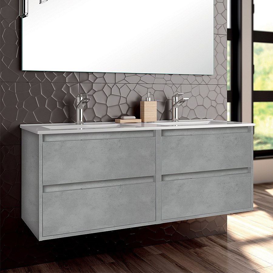 Meuble de salle de bain 120cm double vasque - 4 tiroirs - IRIS - ciment (gris)