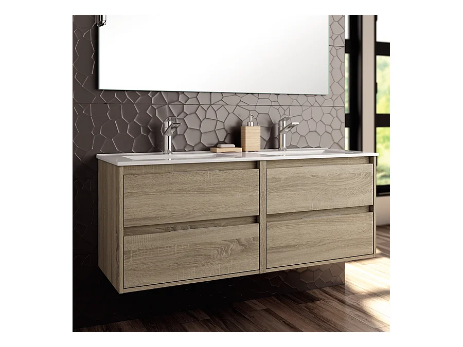 Meuble de salle de bain 120cm double vasque - 4 tiroirs - sans miroir - IRIS - cambrian (chêne)