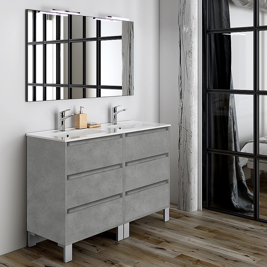 Meuble de salle de bain 120cm double vasque - 6 tiroirs - TIRIS 3C - ciment (gris)