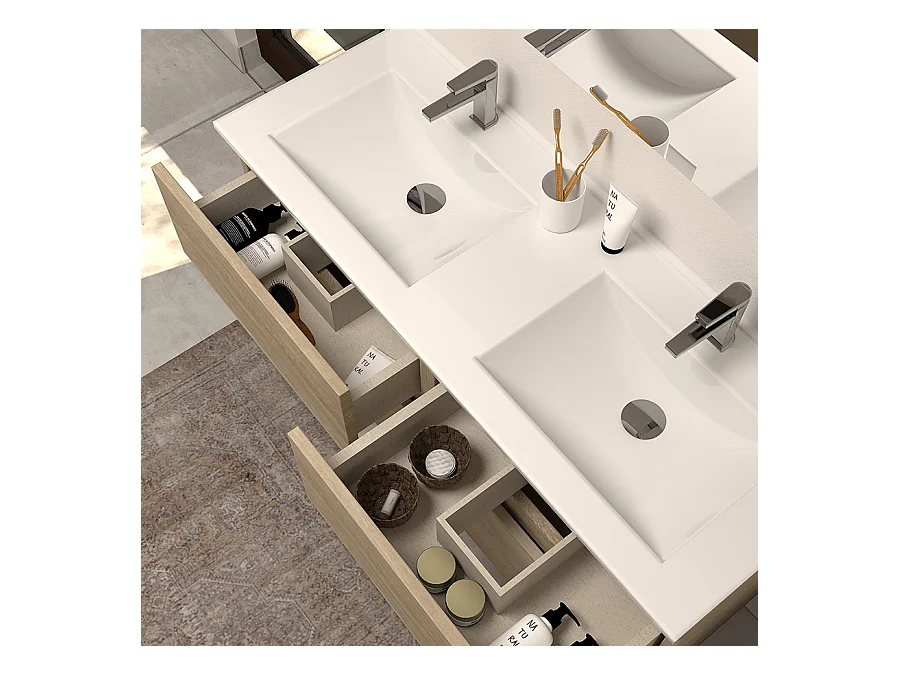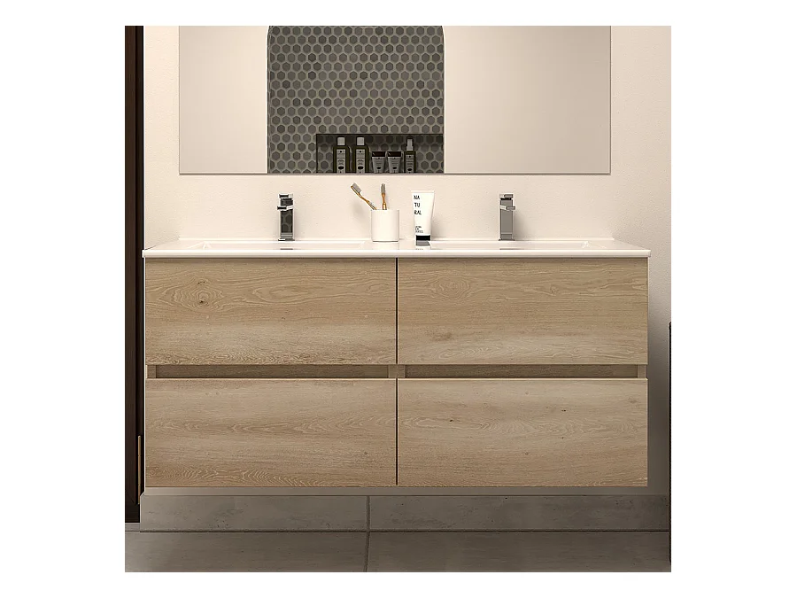 Meuble de salle de bain 120cm double vasque - sans miroir - 4 tiroirs - nebraska (bois clair) - IDA
