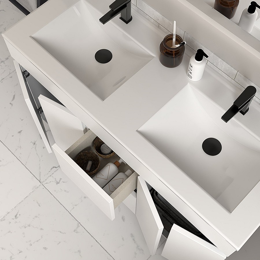 Meuble de salle de bain 120cm double vasque sans miroir sur pieds avec portes et tiroirs - blanc - HARO