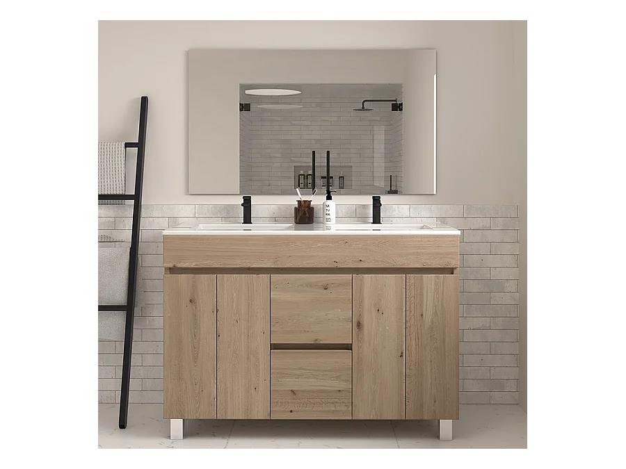 Meuble de salle de bain 120cm double vasque sur pieds avec portes et tiroirs - cambrian (chêne clair) - HARO
