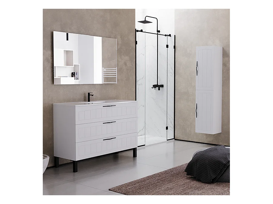 Meuble de salle de bain 120cm simple vasque - 3 tiroirs - blanc - CALA