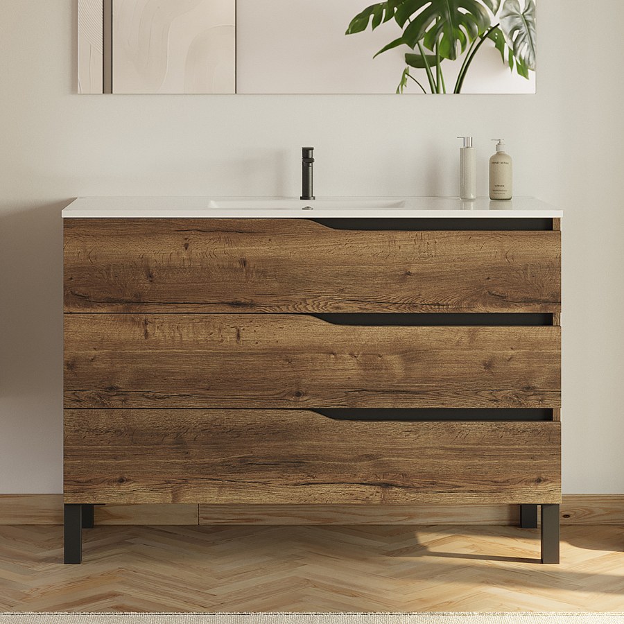 Meuble de salle de bain 120cm simple vasque - 3 tiroirs - noir - MATA