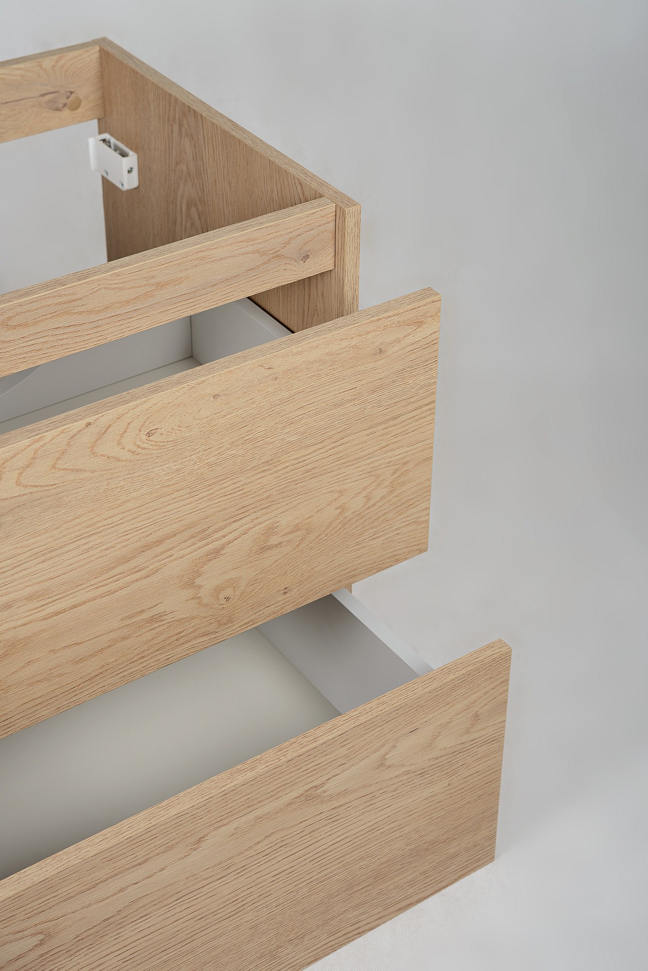 Meuble de salle de bain 140 cm (2 X 60 + 20) + pieds, Couleur : Chêne Clair, 140 x 77 x 46 cm, sans plan de travail