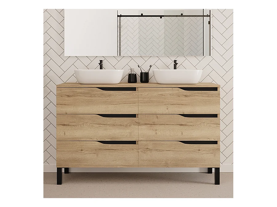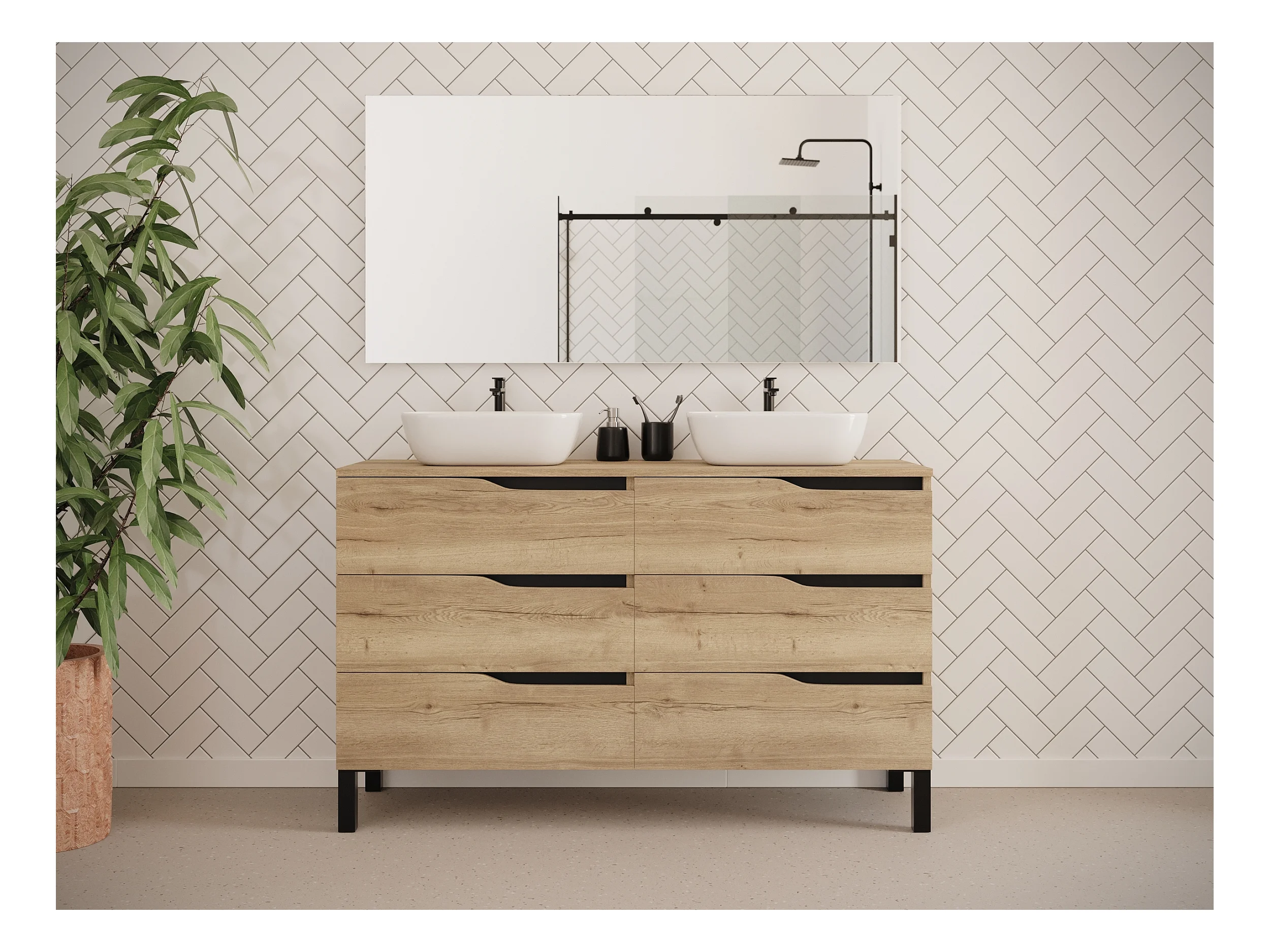 Meuble de salle de bain 140cm avec plateau et deux vasques à poser zeus - 6 tiroirs - madera miel (chêne clair) - MATA