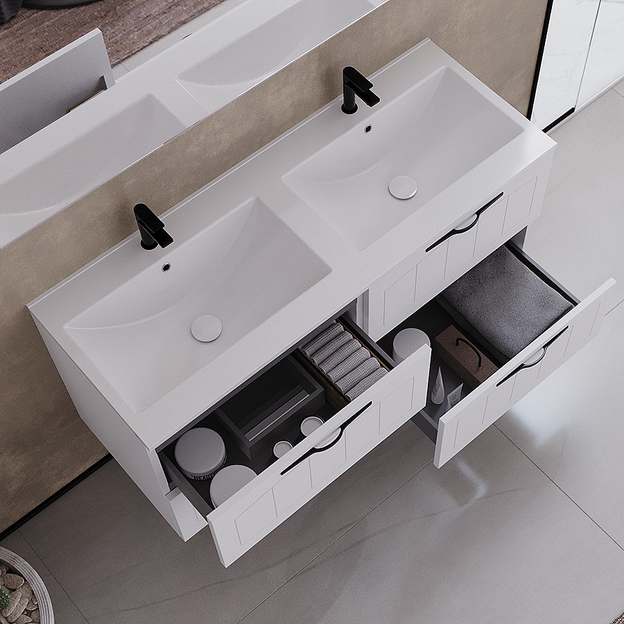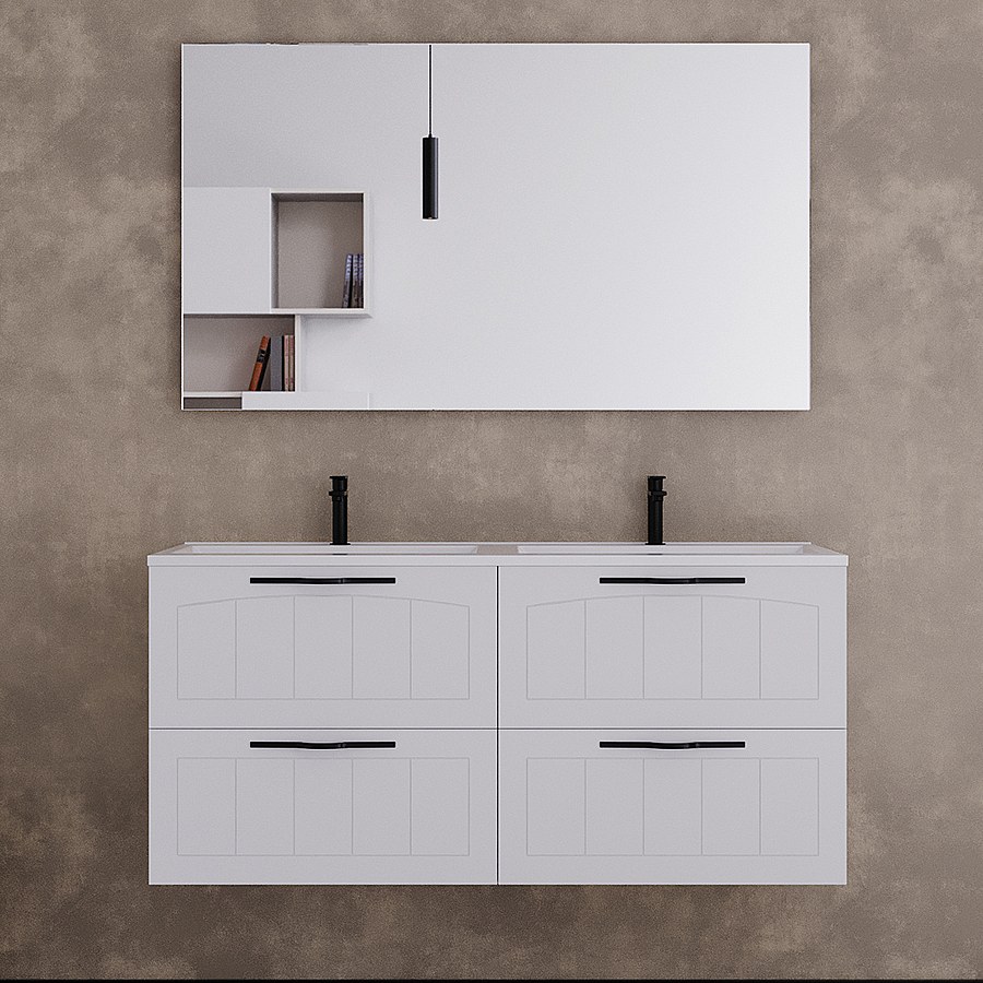 Meuble de salle de bain 140cm double vasque - 4 tiroirs - blanc - PIA