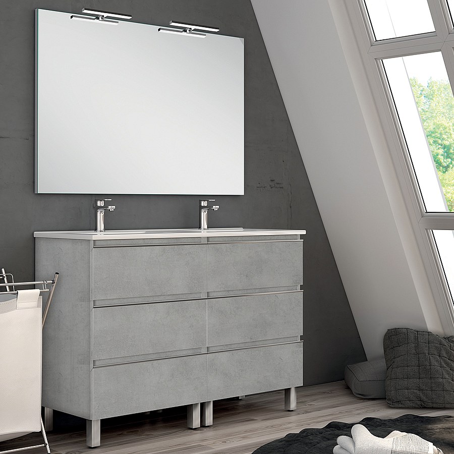 Meuble de salle de bain 140cm double vasque - 6 tiroirs - PALMA - ciment (gris)