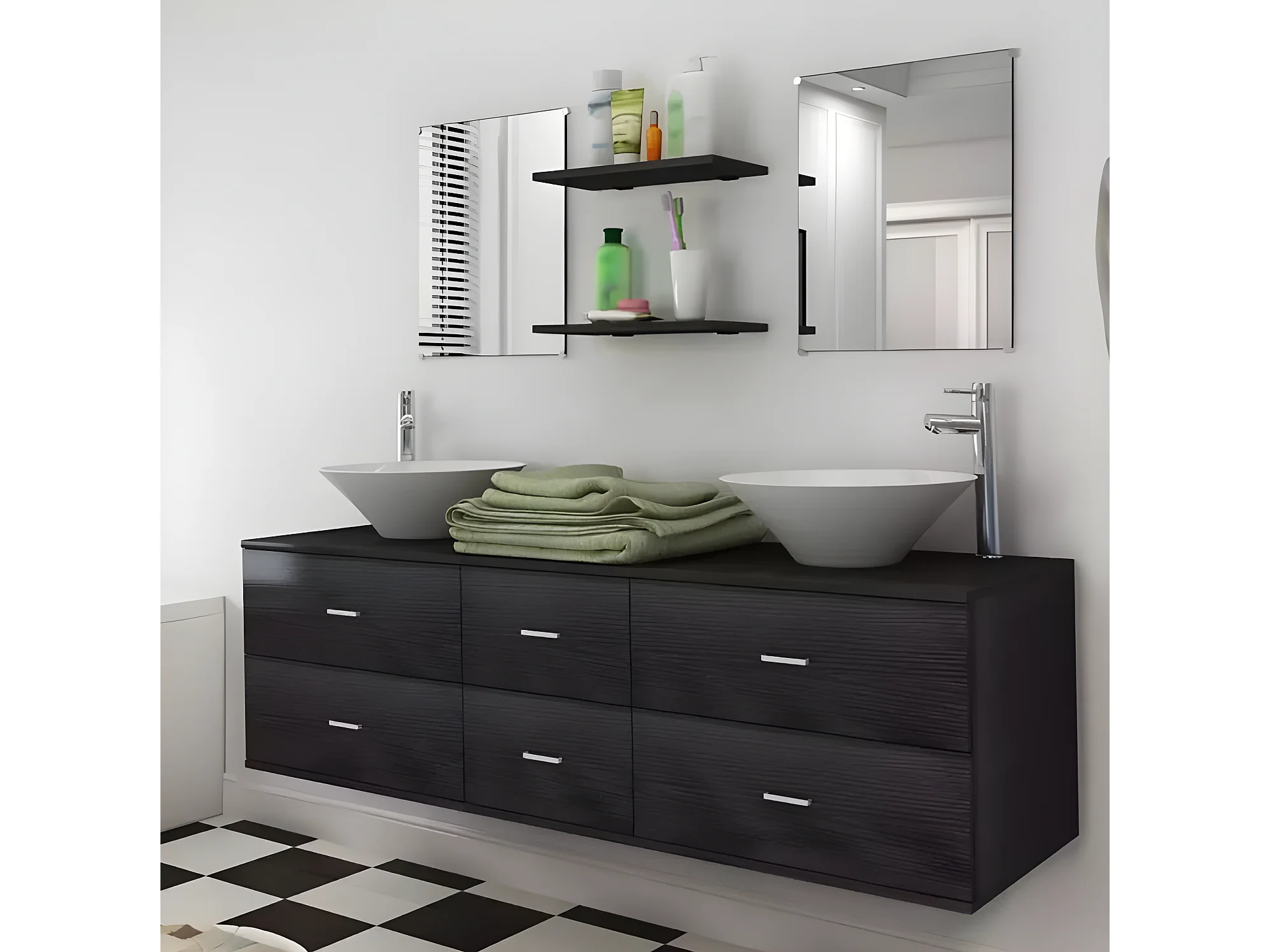 Meuble de salle de bain 15 pièces bois laqué noir Val