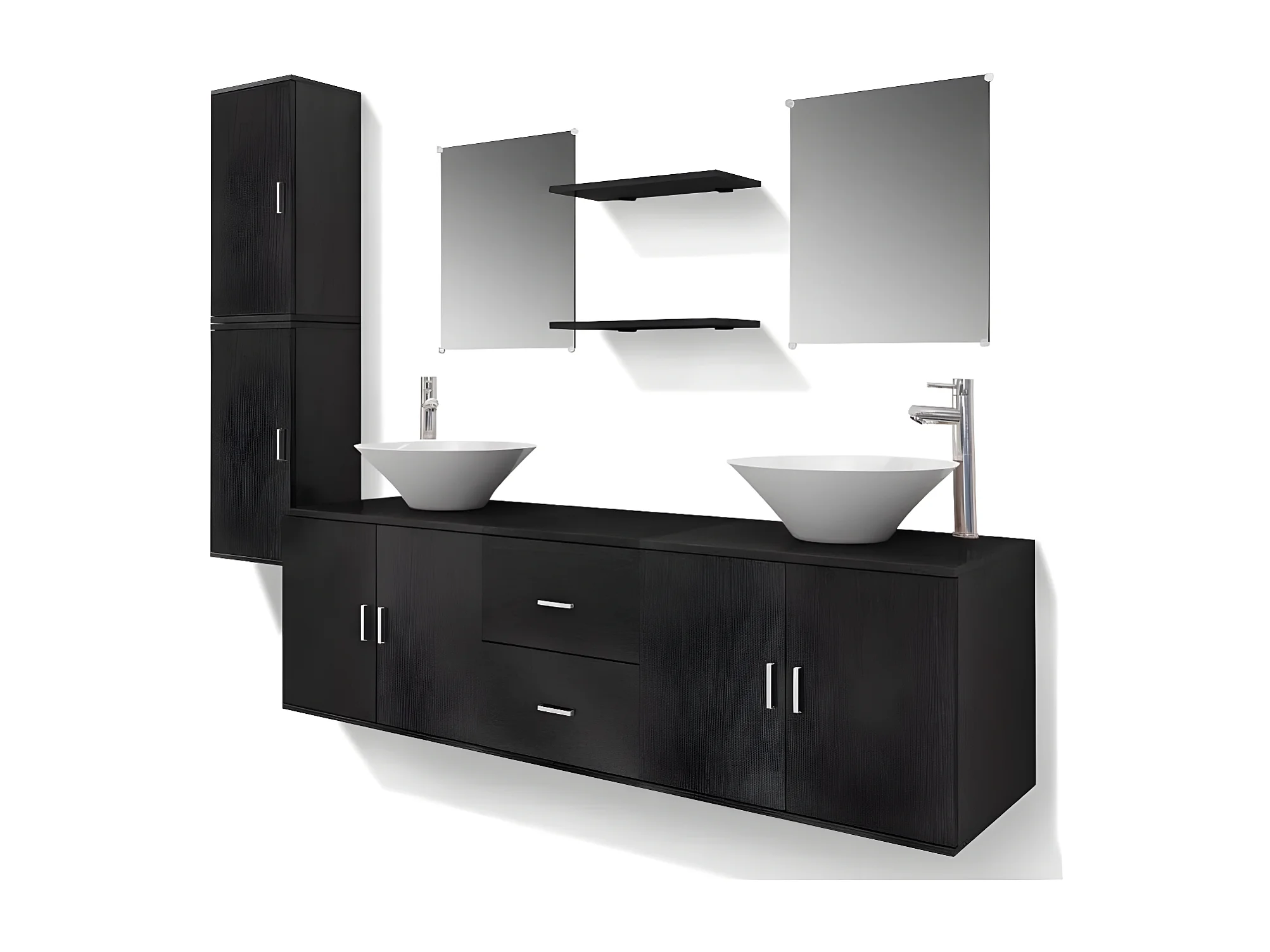 Meuble de salle de bain 17 pièces bois laqué noir Val