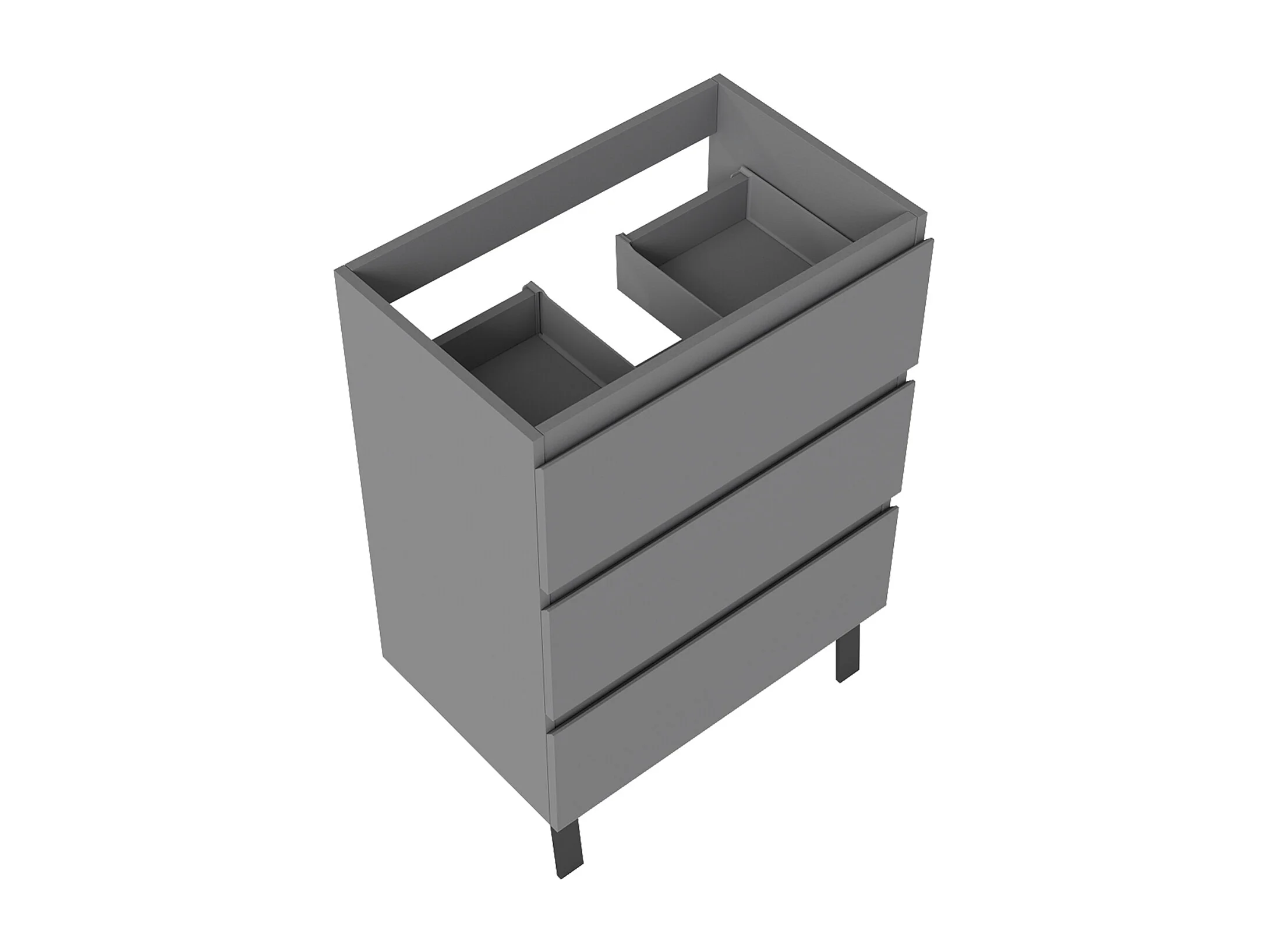 Meuble de Salle de Bain 60cm avec 3 tiroirs + 2 Pieds, Meuble sans vasque, Anthracite