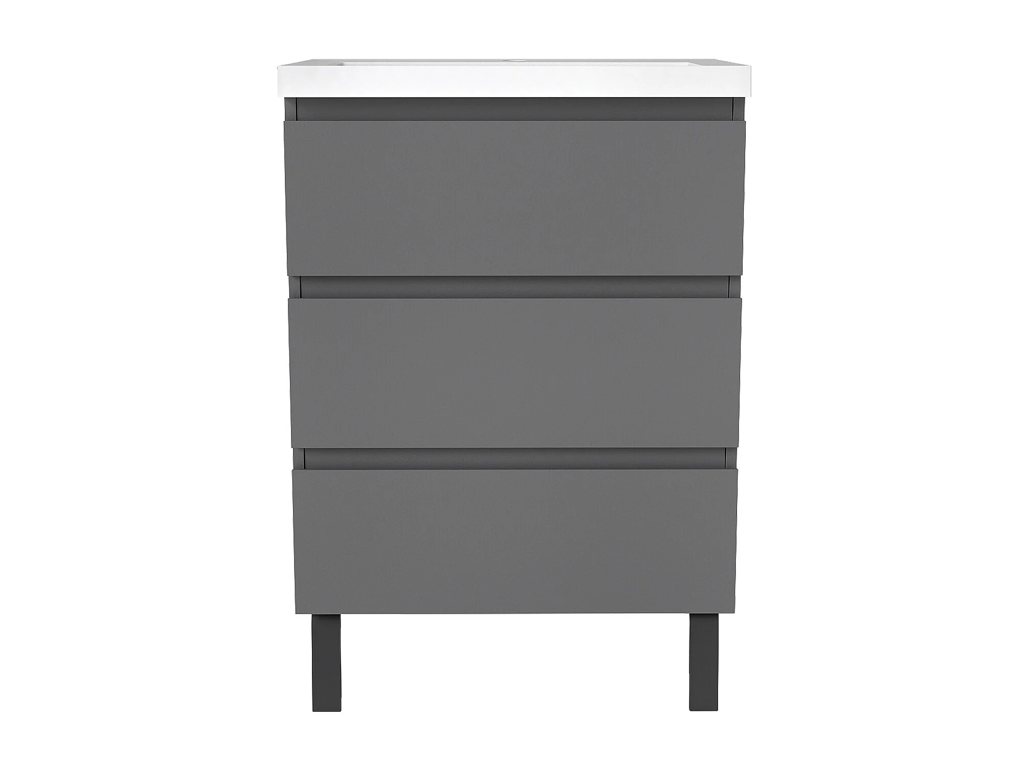 Meuble de Salle de Bain 60cm avec 3 tiroirs + 2 Pieds, Meuble simple vasque céramique, Anthracite