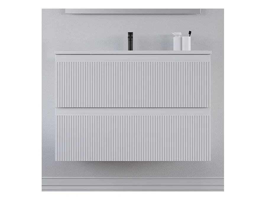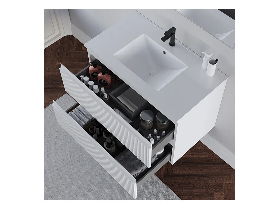Meuble de salle de bain 60cm avec plan simple vasque - sans miroir - 2 tiroirs - blanc - RIBERA