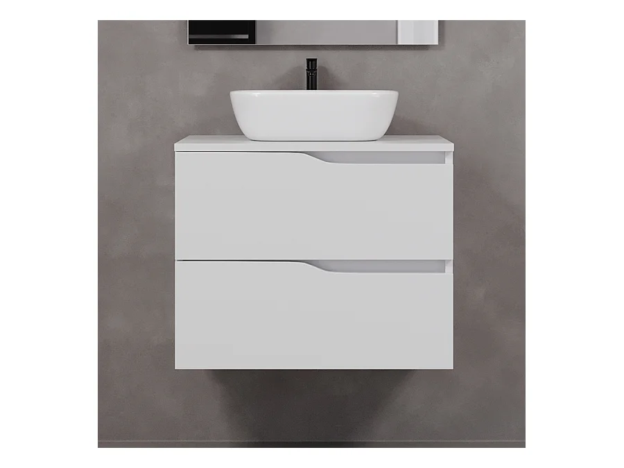 Meuble de salle de bain 60cm avec plateau et vasque à poser zeus - 2 tiroirs - blanc - LUNA