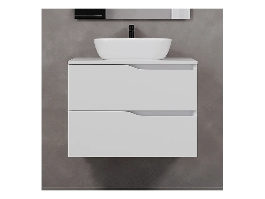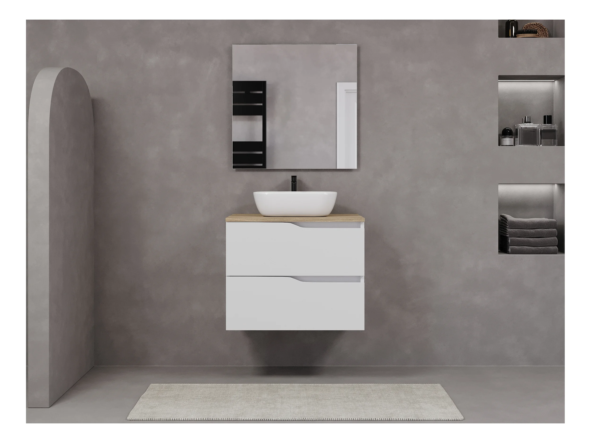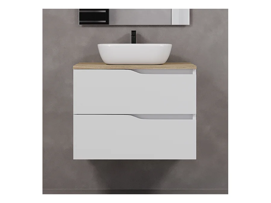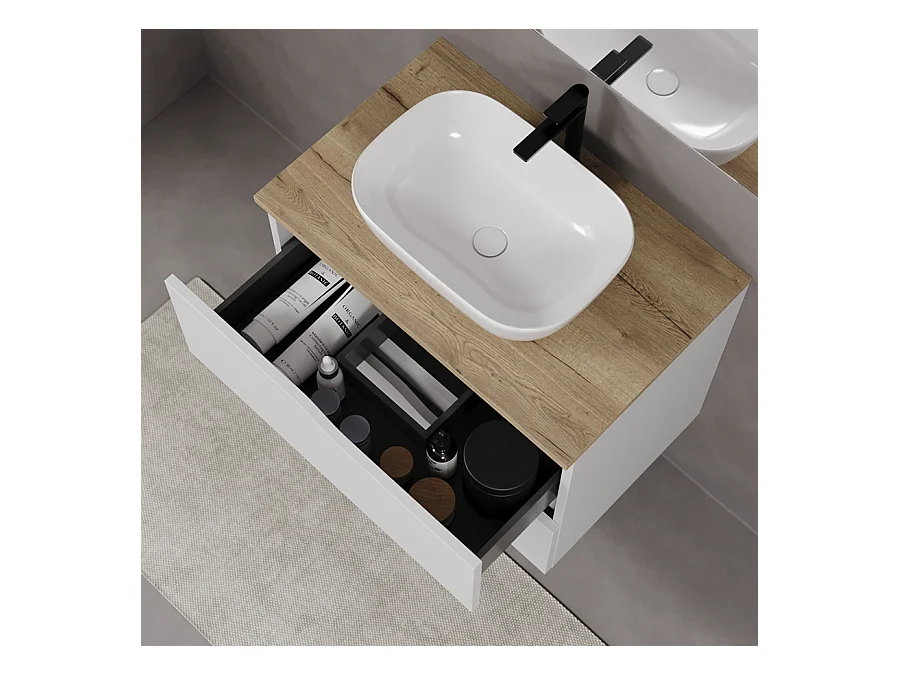 Meuble de salle de bain 60cm avec plateau miel et vasque à poser zeus - 2 tiroirs - blanc - LUNA