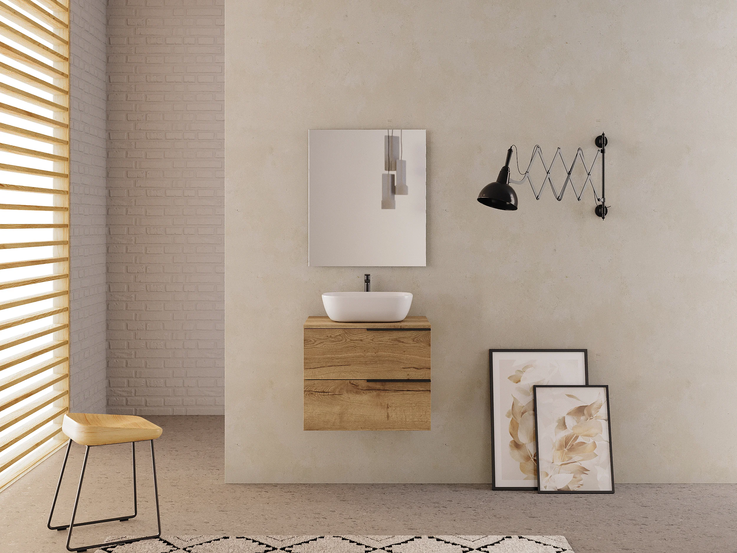 Meuble de salle de bain 60cm avec vasque à poser arrondie - 2 tiroirs - roble (chêne clair) - KING