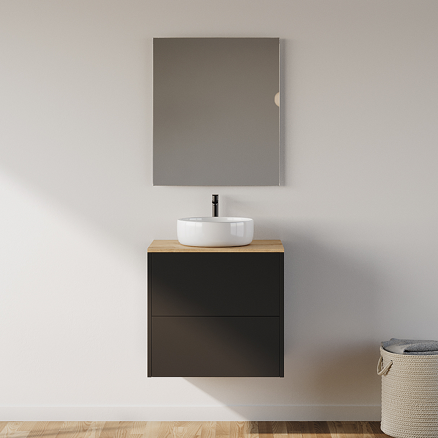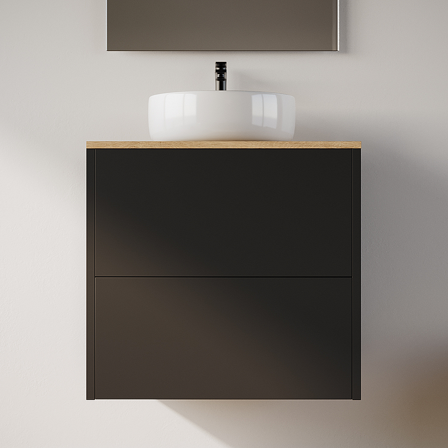 Meuble de salle de bain 60cm avec vasque à poser ronde - 2 tiroirs - noir - MONA