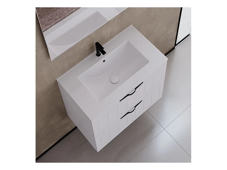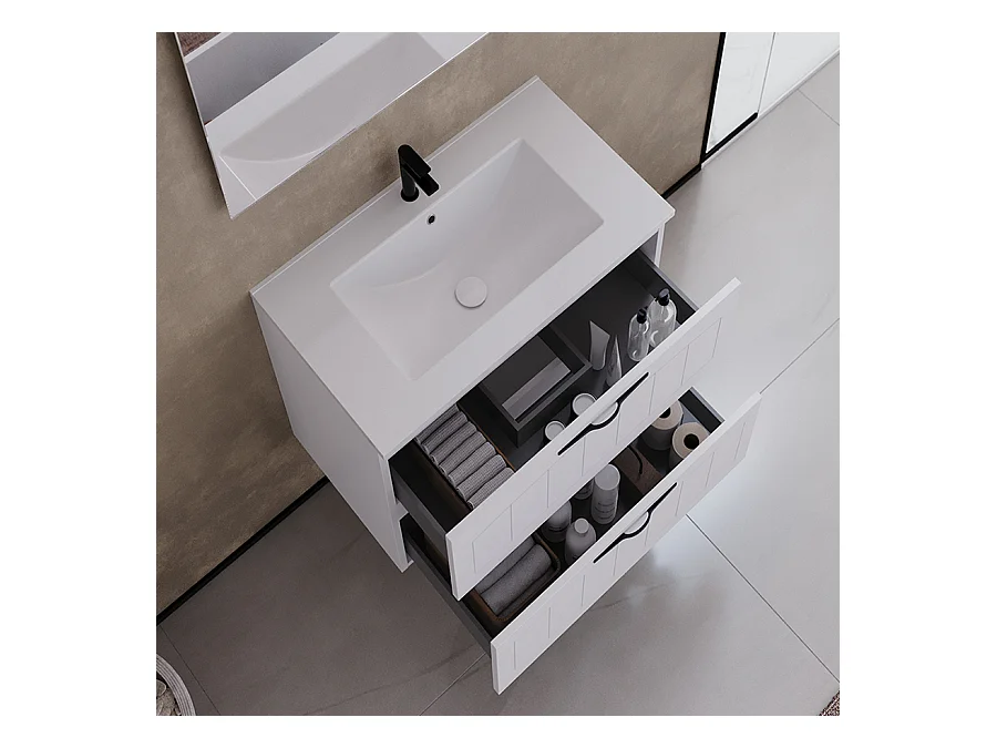 Meuble de salle de bain 60cm simple vasque - 2 tiroirs - sans miroir - blanc - PIA