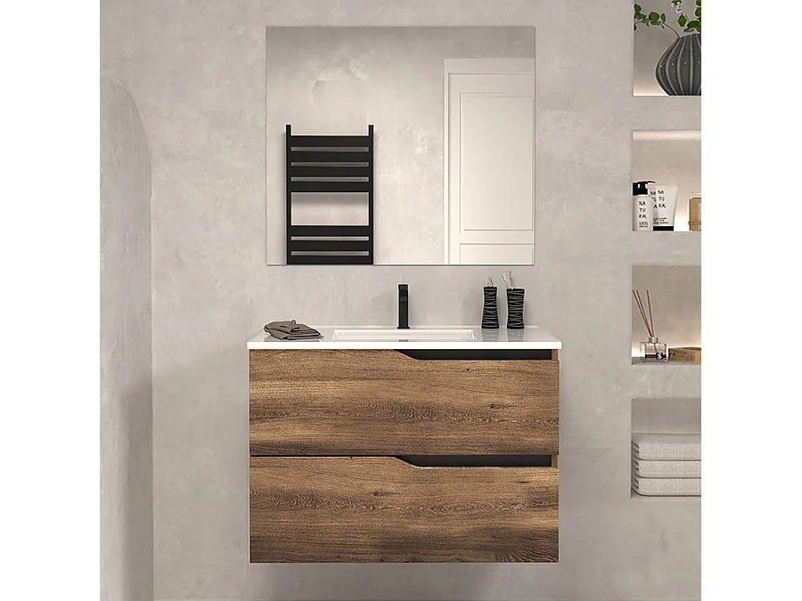 Meuble de salle de bain 60cm simple vasque - 2 tiroirs - tabaco (bois foncé) - LUNA