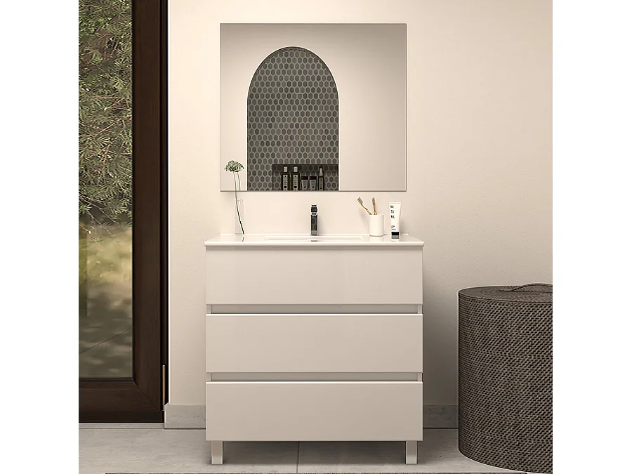 Meuble de salle de bain 60cm simple vasque - 3 tiroirs - blanc - MAYOR