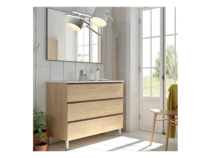Meuble de salle de bain 60cm simple vasque - 3 tiroirs - PALMA - bambou (chêne clair)