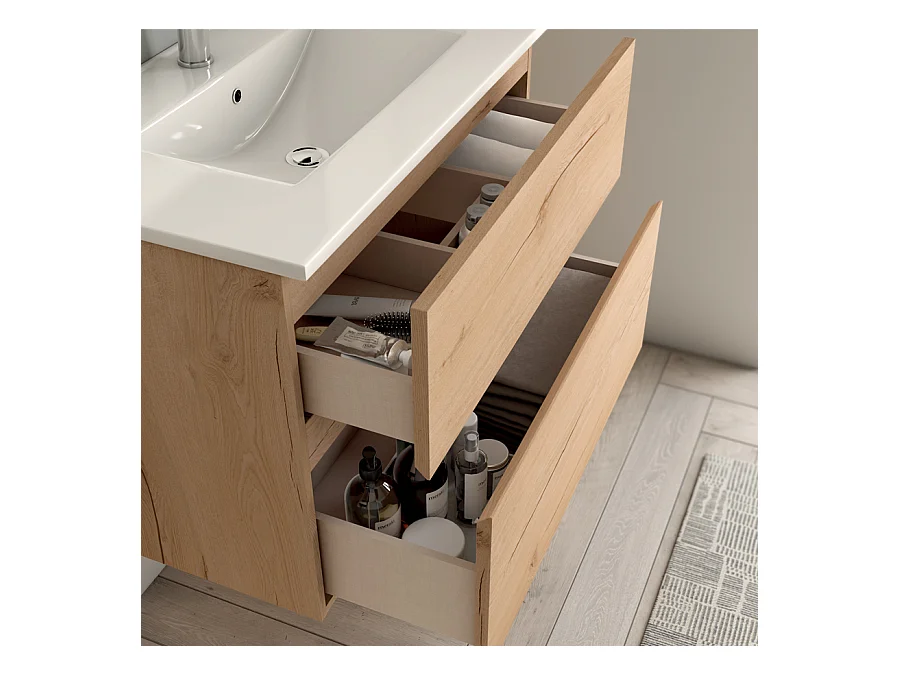 Meuble de salle de bain 70cm simple vasque - 2 tiroirs - sans miroir - MIG - blanc